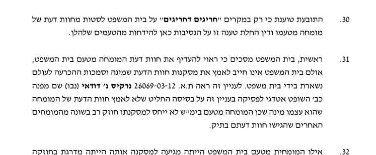 אז הנה, עורך הדין שציטט לא שיקר. הוא רק עשה מניפולציה על האמת. הוא קיצר, שם אליפסיס, והוציא דברים מהקשרם. פסק הדין אמר הפוך.