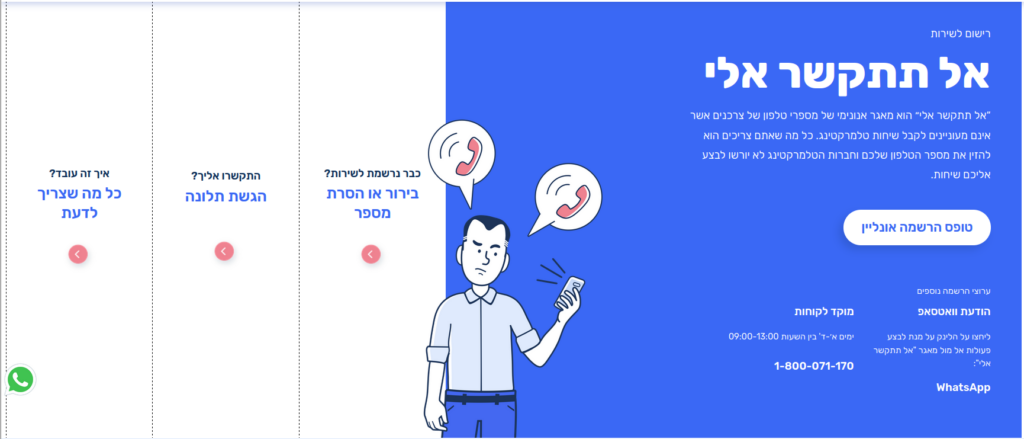 לפני עשור הכנסת התחילה לדון ברעיון שהיה נראה לי נורא, ועדיין נראה לי כזה: מאגר מידע על אנשים שלא רוצים להיות במאגרי מידע. מאגר "אל תתקשר אליי" היה אמור להיות כזה: אתה נרשם, מאמתים את הפרטים שלך וזהו. אין לך יותר הטרדות טלפוניות. על פניו זה נשמע כמו חלום. יש רק כמה בעיות. התיקון עצמו לחוק הגנת הצרכן? בלי שיניים. נרשמת למאגר ומישהו התקשר אלייך? אתה לא יכול לתבוע אלא רק הרשות יכולה לפתוח בהליך אכיפה. כמה כאלה היו? ובכן, אני לא שמעתי על כאלה. תביעות ייצוגיות? גם כאלה לא הוגשו בדיוק מהסיבה הזו (או לפחות לא שמעתי על אלה). והדובדבן? ובכן, השרה למאבק בשוויון חברתי החליטה לא לתת תקציב למאגר בשנת 2024, וכך נוצר מצב שבו לפחות עד יולי 2025 המאגר עמד מושבת. באתר "כל זכות" כתוב שהמידע על המאגר הוסר כי המאגר לא פעיל; ובאתר של המאגר נראה לי שאי אפשר להרשם, להסיר, לברר או לעשות שום דבר (טופס התלונה עובד).